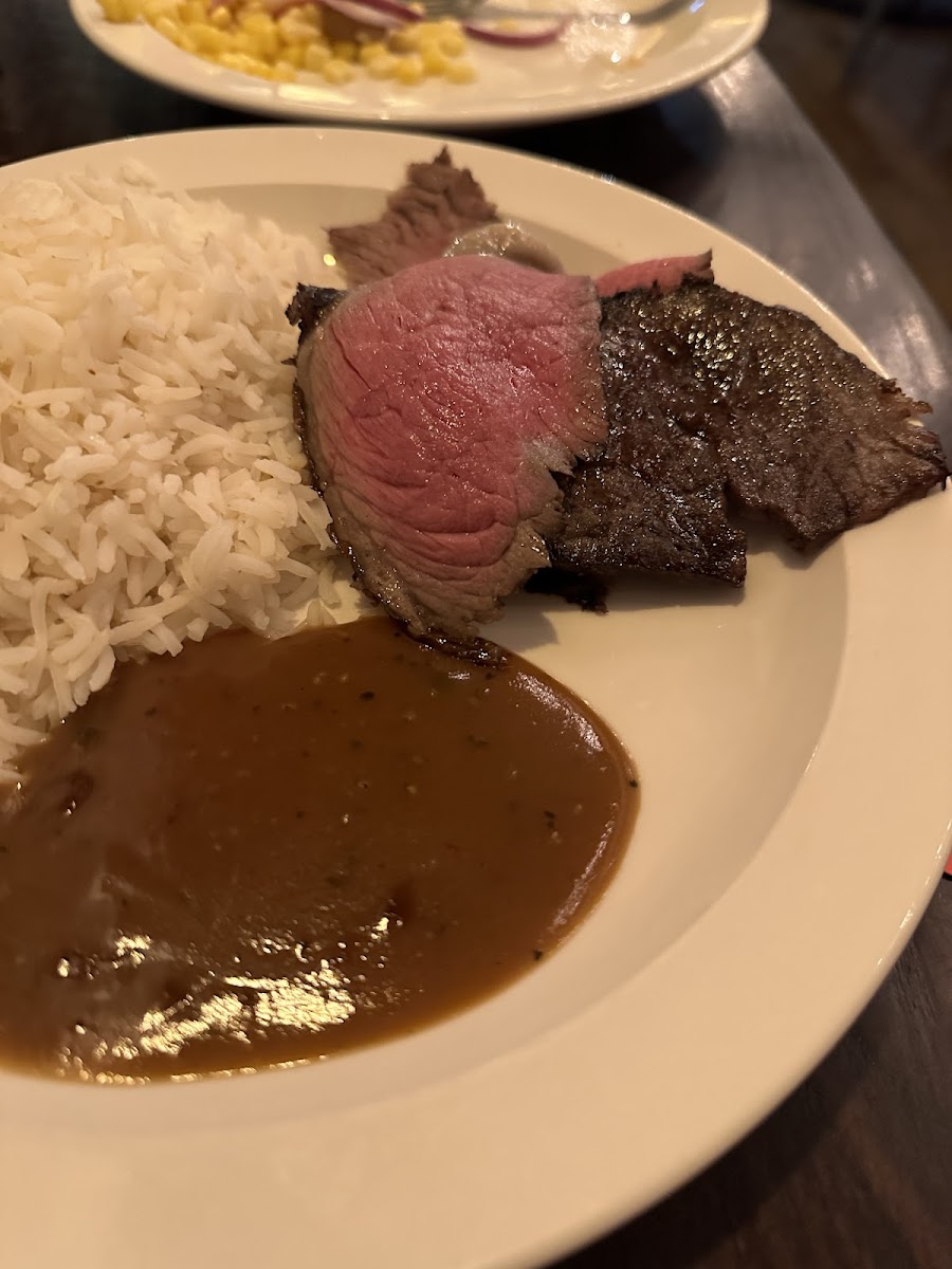 But it’s not all about meat. Vegetarians and lighter eaters can load up from their salad buffet, which is more like a gourmet spread than a side bar. Think fresh greens, seasoned rice, golden fries, and salad bar extras that change with the seasons.